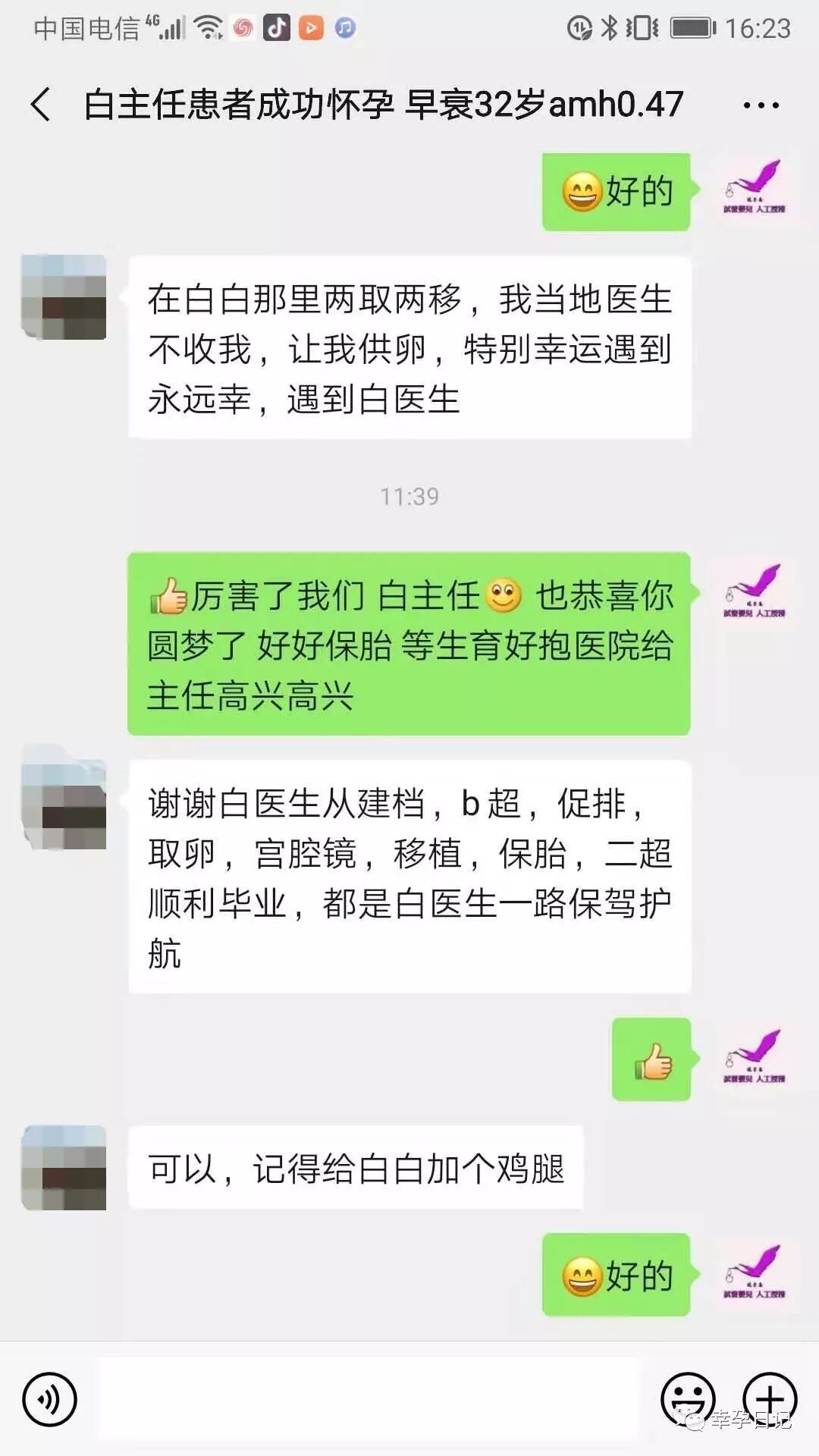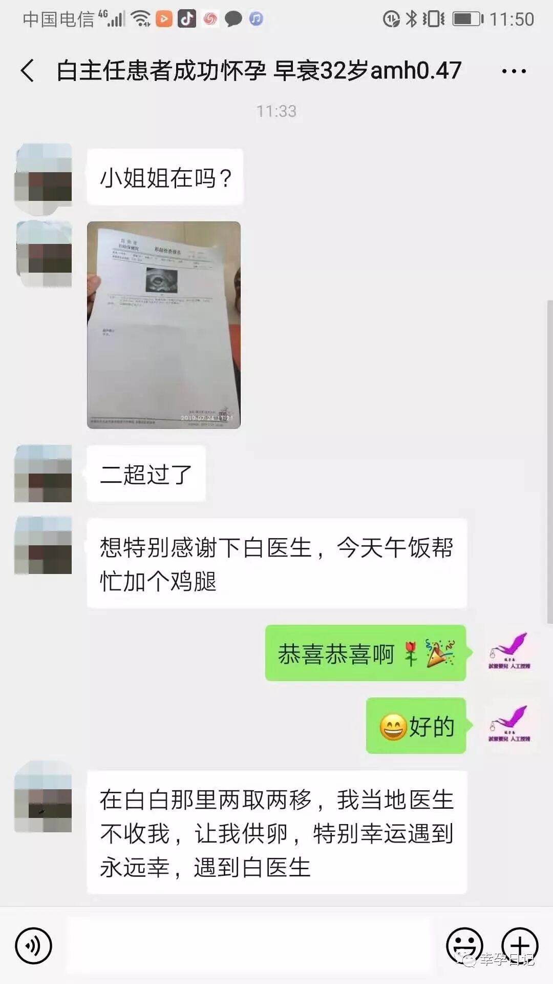 2018年12月买好动车票只身一人转战上海,找到你,你说我挺好的,不需要供卵,从建档,b超,促排,取卵,宫腔镜,移植,都是你一手操办,两取四个胚胎两移终于成功了,我拿到血值自己都吓懵了,移植第9天出血,以为来月经大哭一场,特别幸运会遇到永远幸,遇到白医生,让我有机会怀个自己的宝宝,爱你